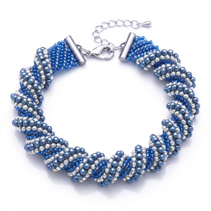 Bracelet tissé à main levée en châtons de cristal facetté, perles de verre ciré et perles de verre "Miyuki".