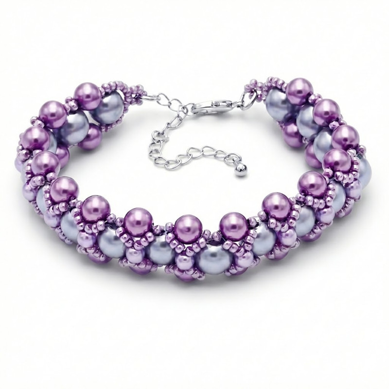 Bracelet tissé à main levée en perles de verre ciré, perles galvanisés et perles "Miyuki".